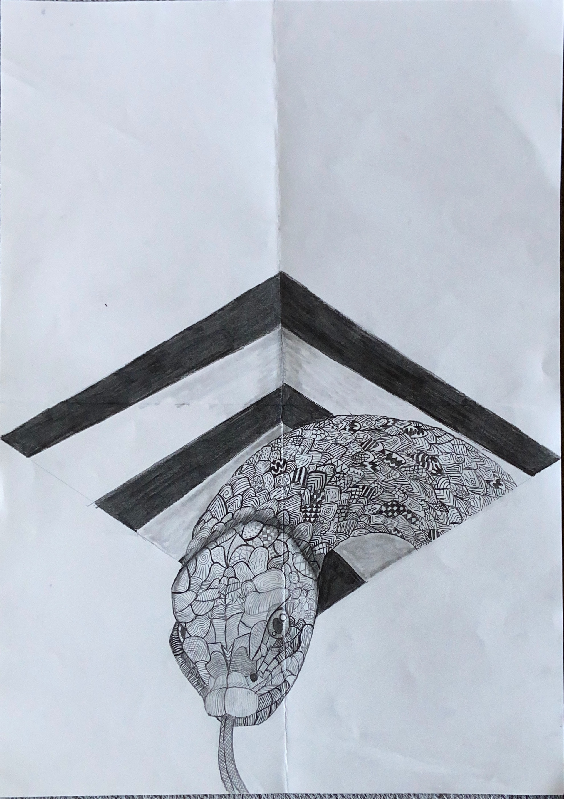 Drawing students were tasked with creating interesting and symbolic art for writing students to make poems about, and writing students were tasked with creating poems for drawing students to illustrate.