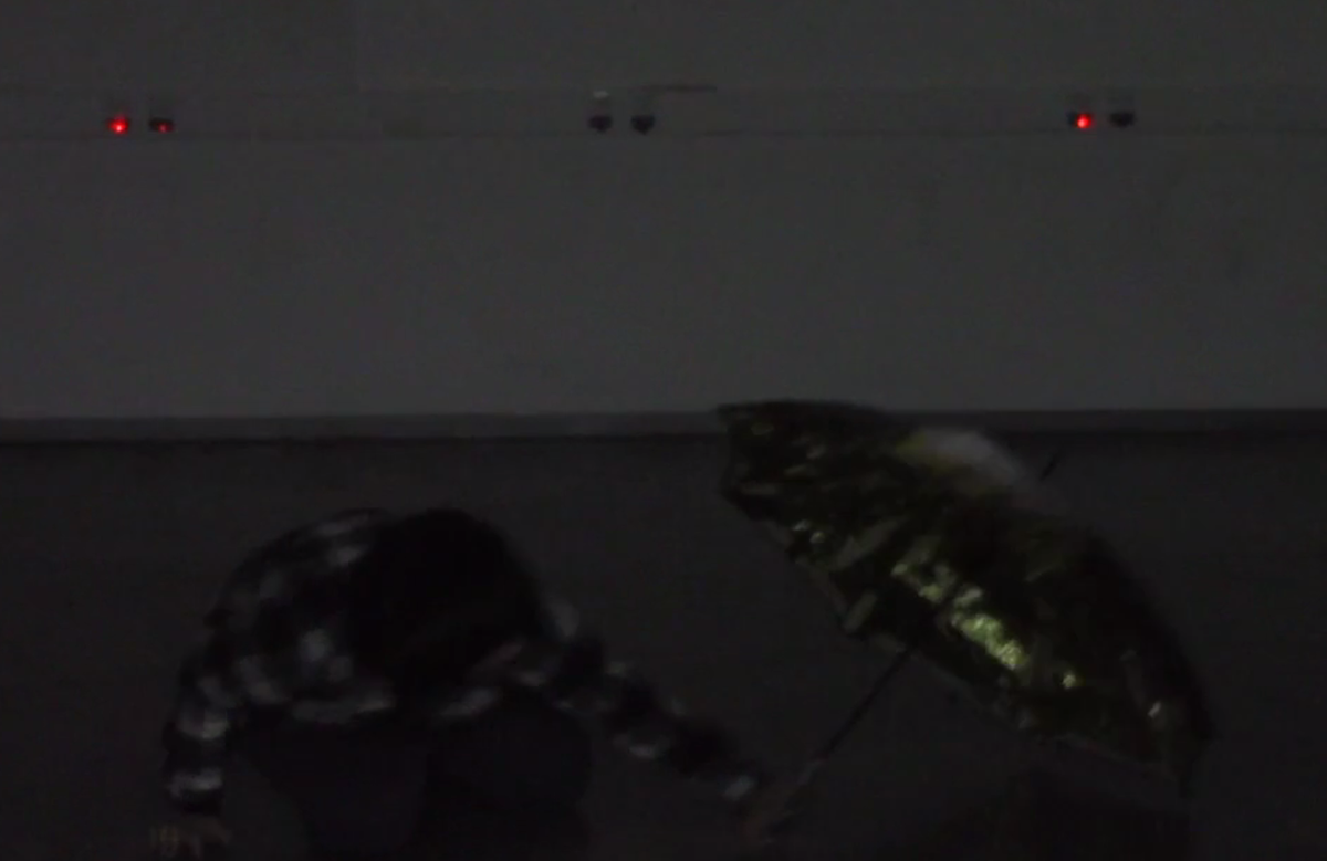 Raincheck, ~5 min. performance, Umbrella, Lights, Sound. Performed at Hyperfocused, 2017